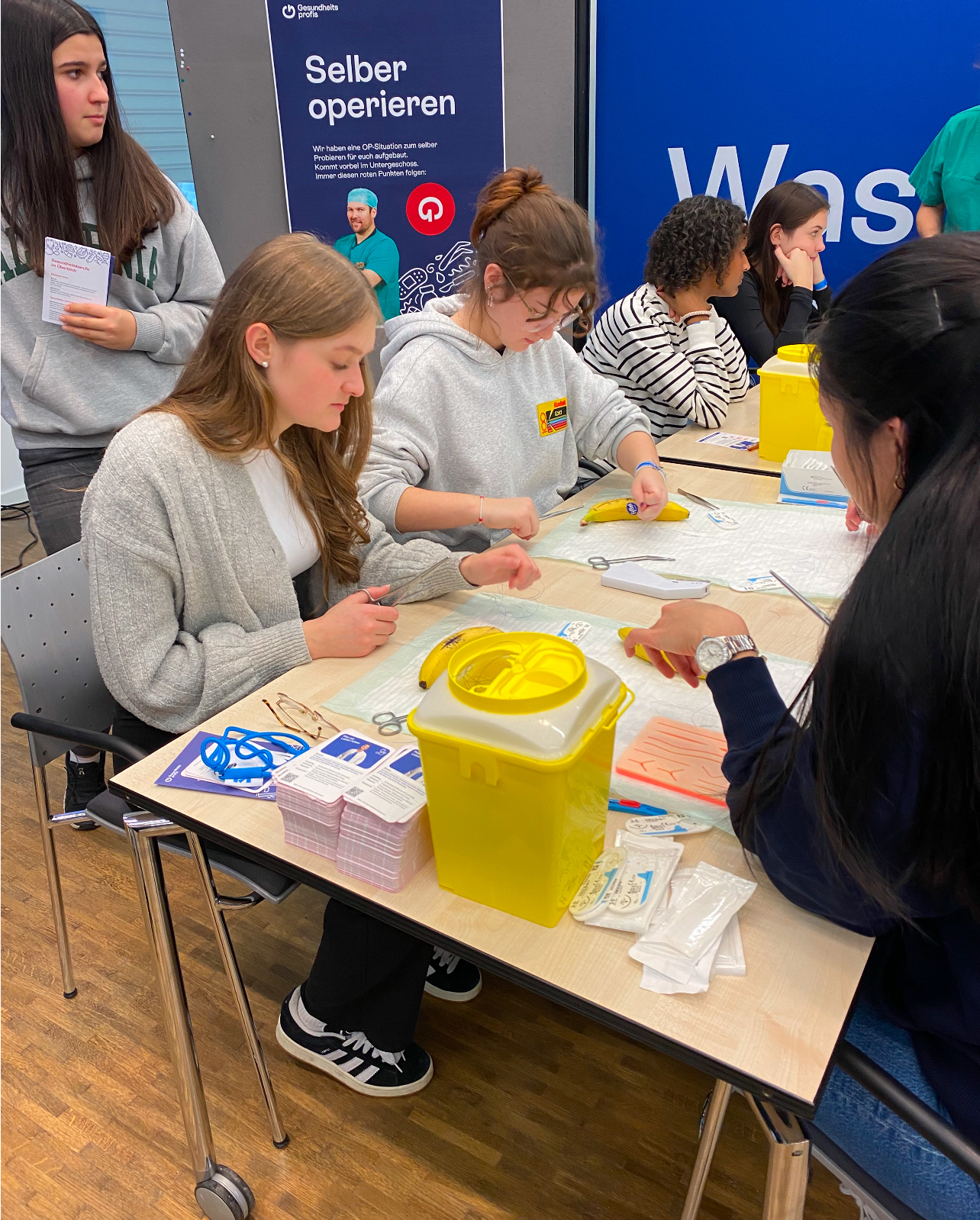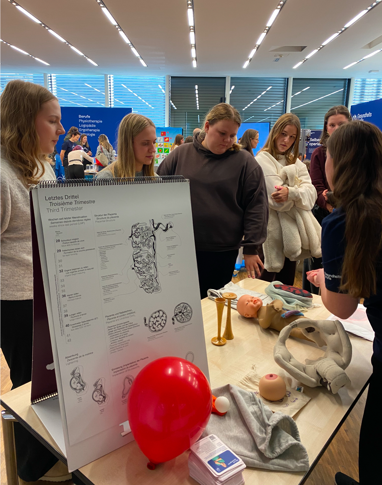 Die Schülerinnen der 3 FW, 4 HLS und 3 HLS waren am LKH in Feldkirch und konnten sich über verschiedene Gesundheitsberufe informieren. An zahlreichen Stationen konnten sie ausprobieren und erfahren, wie es sich anfühlt, in einem Gesundheitsberuf zu arbeiten. Die vorgestellten Berufe waren z.B.: Heebamme, Zahnärzt:in, Zahnarztassistenz, Pflege(fach)assistenz, Diätologie, Ergotherapie, Physiotherapie, Orthoptik, Biomedizinische Analytik, Radiologie-technologie, Ärztin.