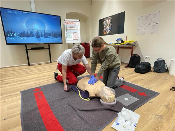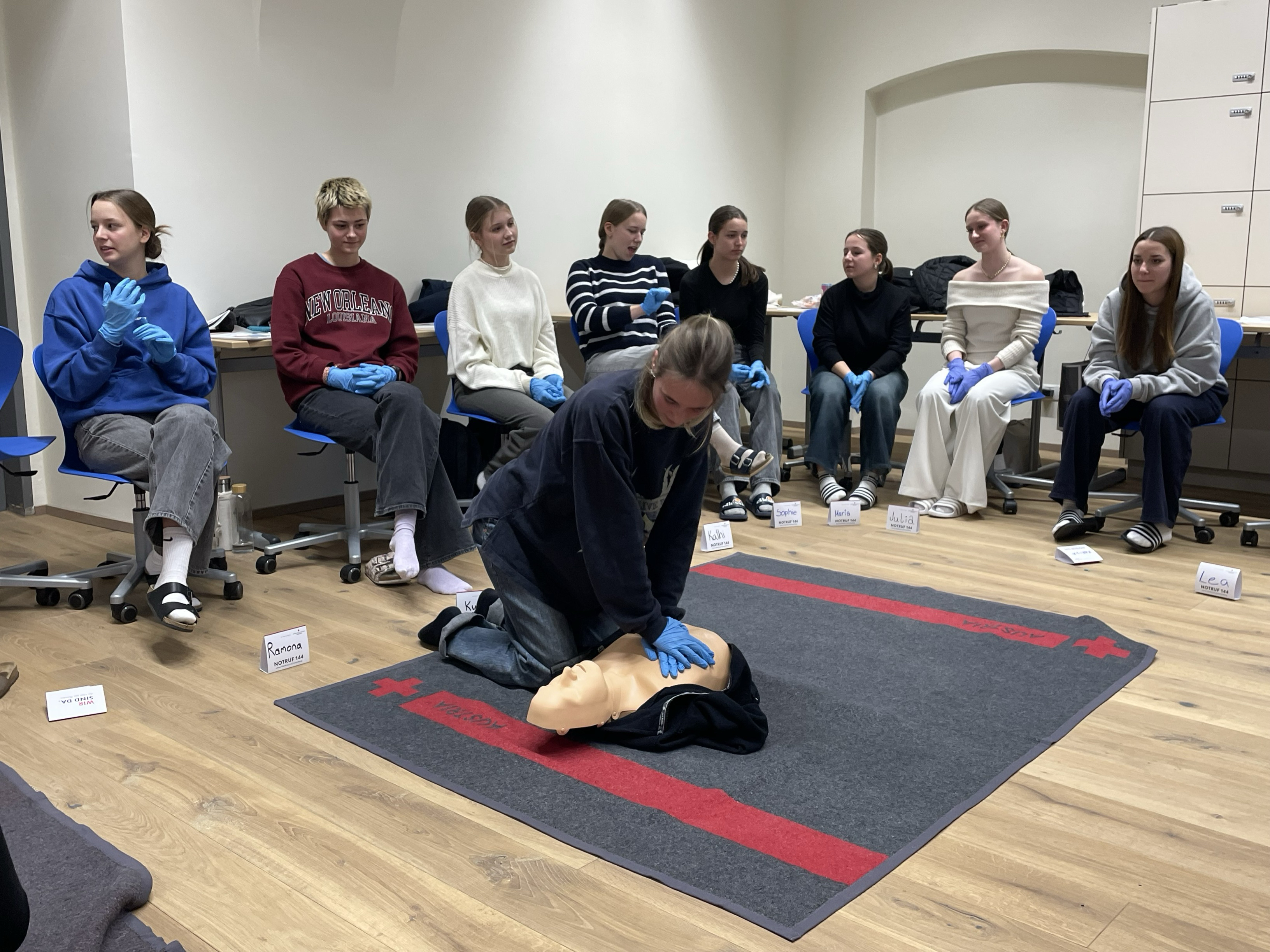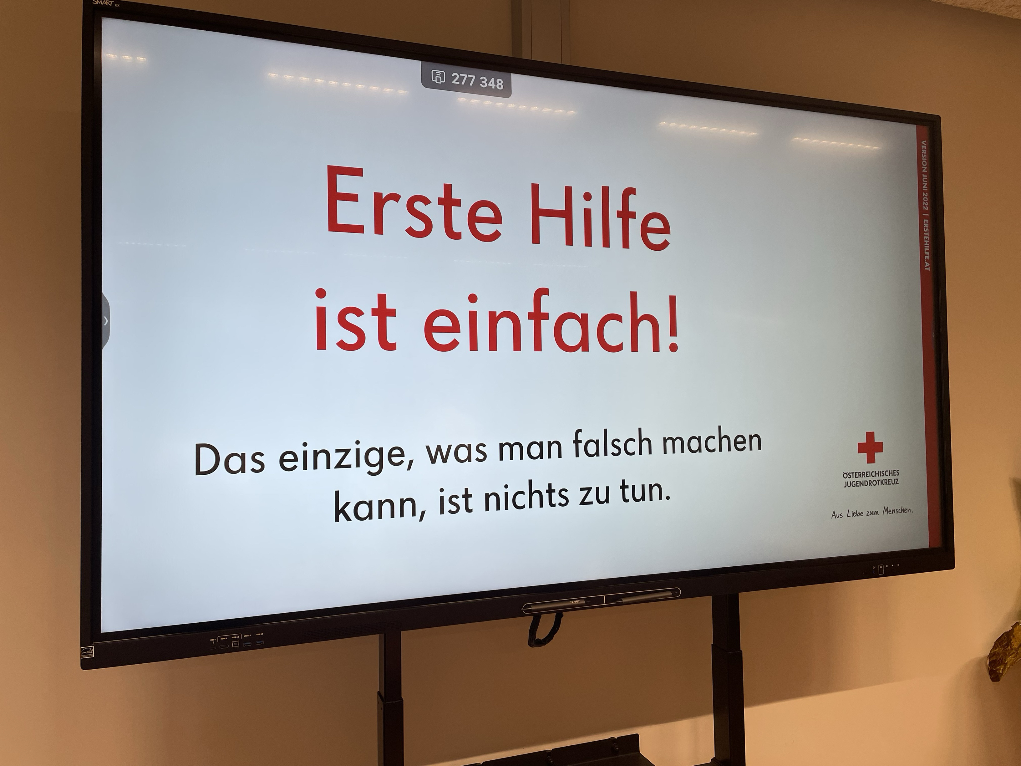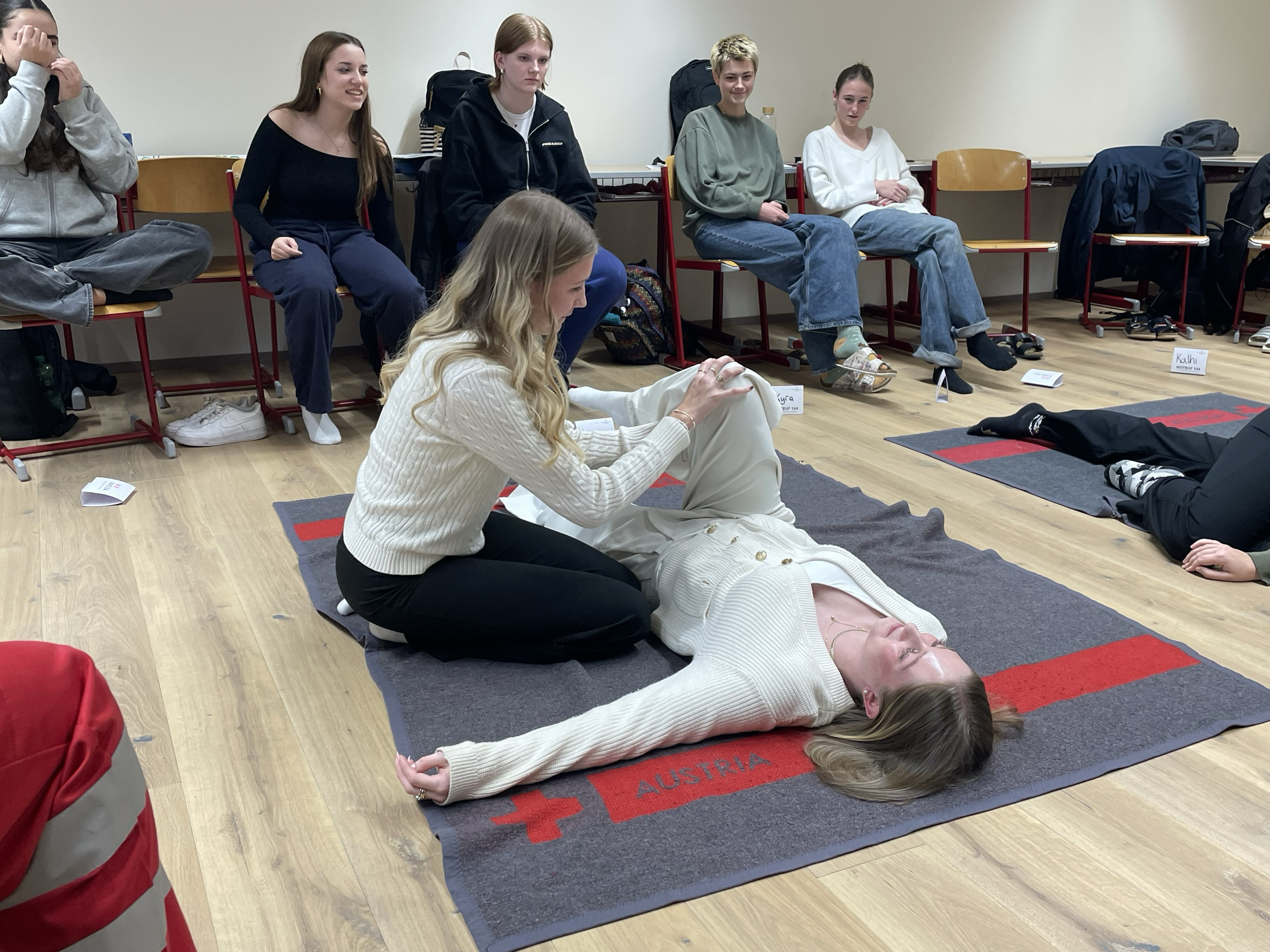 35 Schülerinnen der 2FW, 3FW, III HLS und IV HLS nahmen (freiwillig) am 16-stündigen Erste-Hilfe-Kurs vom Jugendrotkreuz statt.